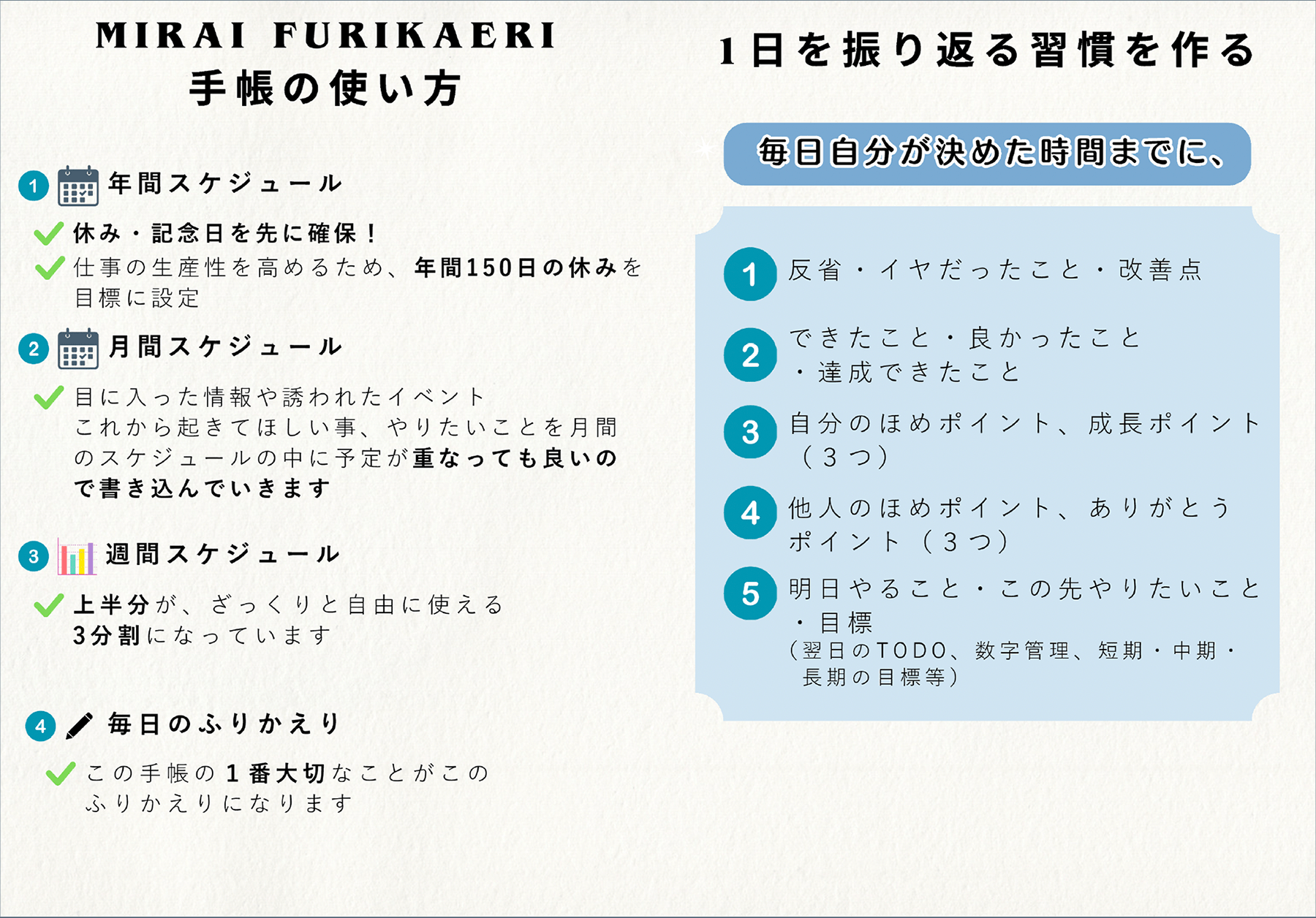 この『MIRAI FURIKAERI DIARY』が、仕事も家庭もプライベートも充実した最高な毎日を手に入れたい“あなた”の助けになれば幸いです。